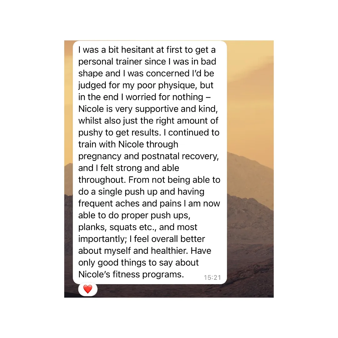 Boost Confidence, Energy, and Wellbeing: No restrictive diets or crazy workouts, all just a tailored plan for you. We'll work together to boost your confidence, increase your energy, and enhance your mental wellbeing in a way that fits into your busy life.